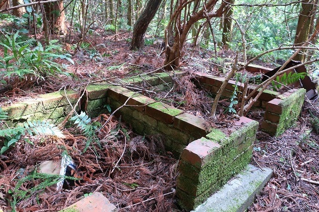 その石垣の上にあったであろう建物は解体され、レンガで造られたカマドが残るだけだった。