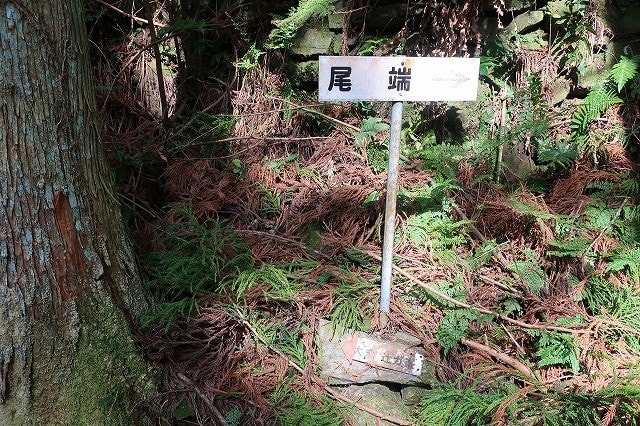 尾端と書かれた道標の下に、小さな辻ケ峯と書かれた道標に従って左に進んで行く。