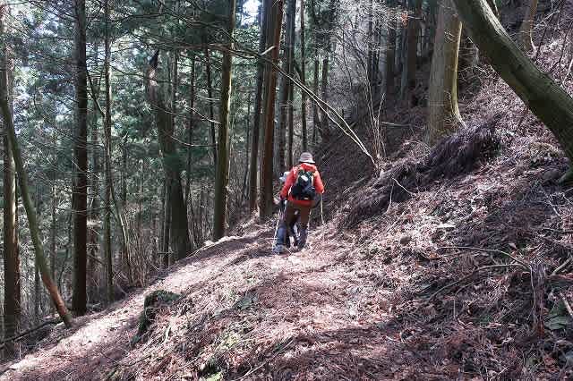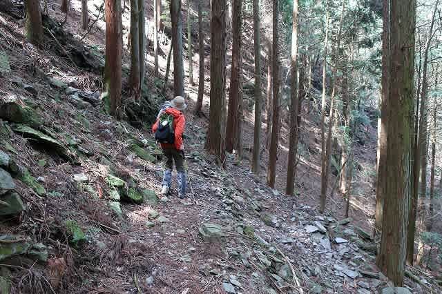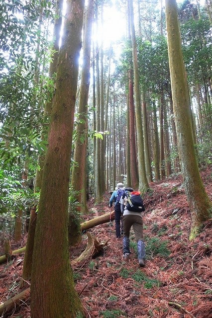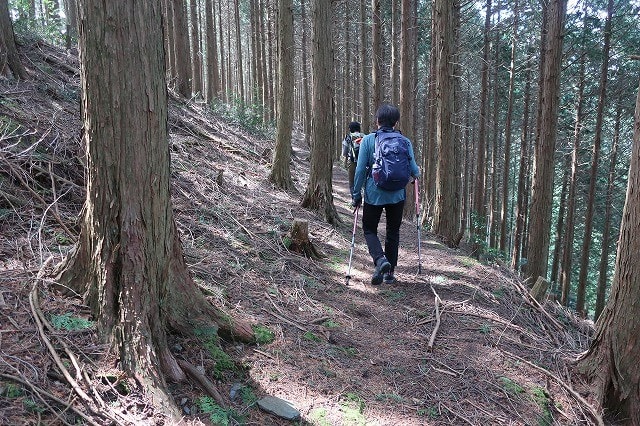 道は次第に杉とヒノキの混在する林の中の道になる。