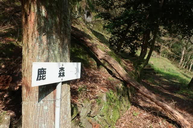 九十九折れに石垣に沿って登って行くと、鹿森索道終点と書かれた場所があった。