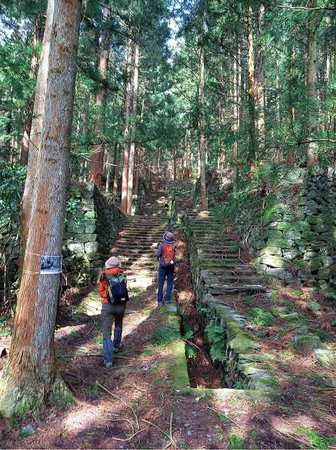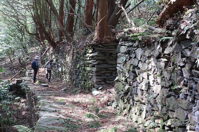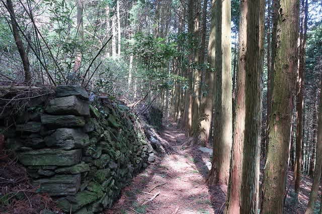 道の傾斜は緩くなってきたが石積みはまだ残っている。さすがにこの辺りの石積みは