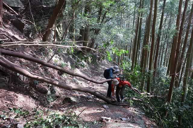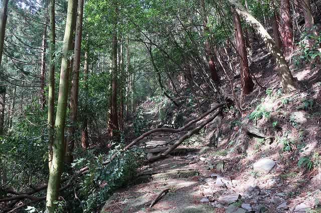 倒木や斜面の石が崩れていて、手が入れられなくなって道は荒れている。