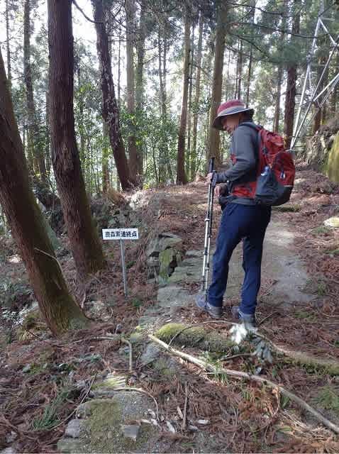 鉄塔広場から道標に従って人工林の中の道を下って行く。