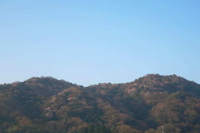 朝の光の当たった山桜が、山の北斜面を染めていてちょうど見ごろを迎えていた。