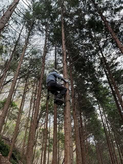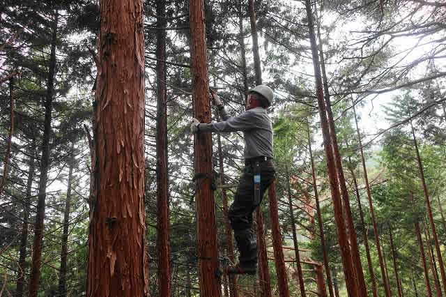 今日はその登降機を使っての枝打ちを体験させてくれた。