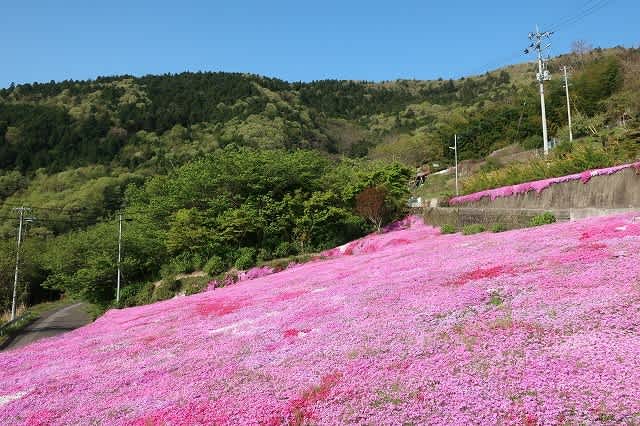 高開の石垣と芝桜とはまた違った、山の斜面に広がる芝桜は圧巻だった。