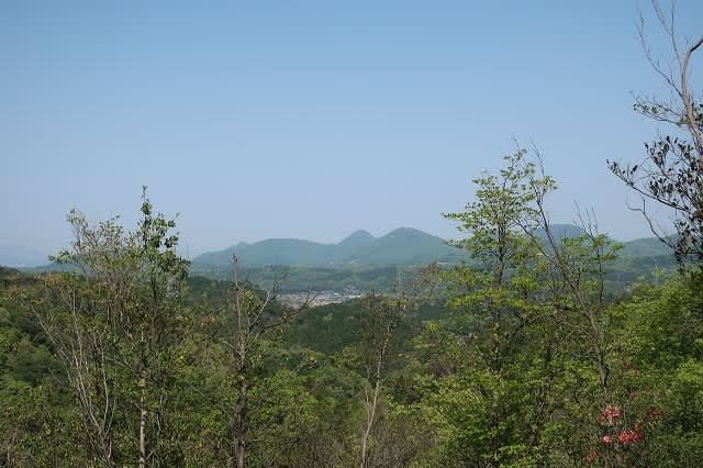 視線を南に移すと笠形山の稜線。振り返ると三角の山は高鉢山と飯野山だろうか?