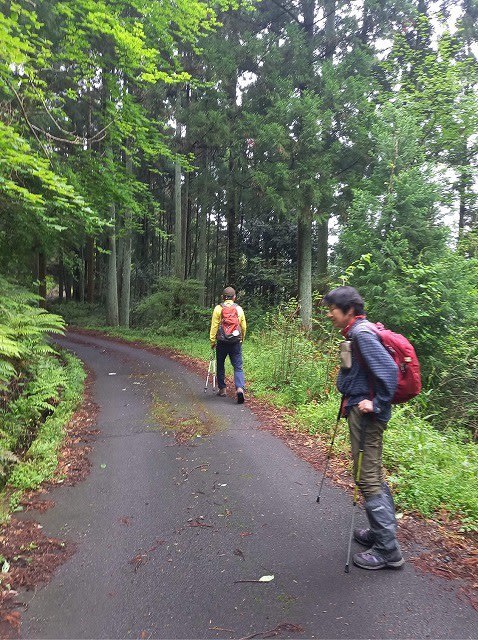 奥様たちはその林道歩きなどどこ吹く風。今そこから歩き始めたようにして