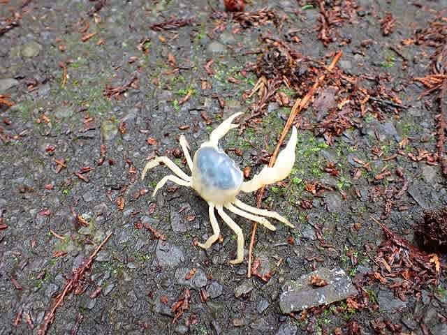 湿った道をサワガニが横断していく。
