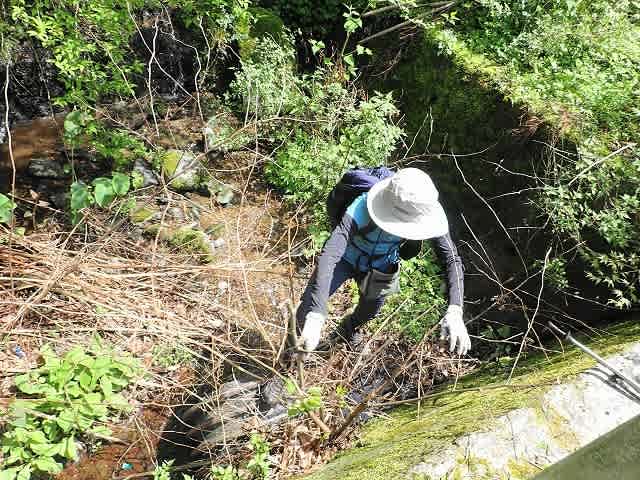 道ではなく、その脇の土手になった所を下って行く。