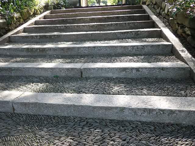 丁寧に掃いていたのは、平らにではなく小端たてに並べたこの石段のせいだった。