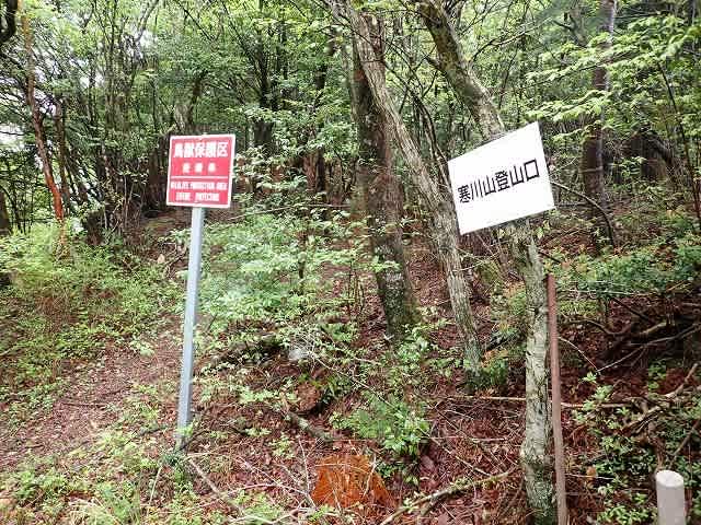 登山口の手前には車が2台停まっていたが、その脇の木に新しく寒川山と書かれたプレートがあった。