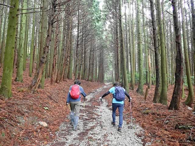 沿って杉林の中を歩いて行く。