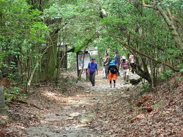下乗石からしばらく歩くと左に折れて石畳が続いている。すると杉さんが、