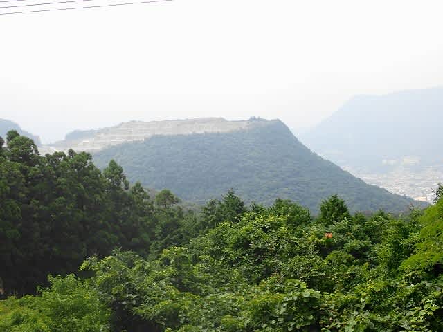 道の途中からは採石で山の形が変わってしまった五夜嶽の採石場の様子が見えた。