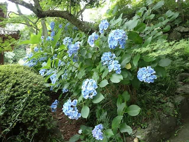 白峰御陵で手を合わせた後、白峯寺へと歩いて行く。境内ではあじさいの花がまだ
