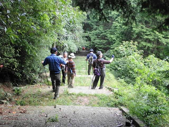 降りて行く。長い石段の脇にはアキノタムラソウが至る所に咲いていた。
