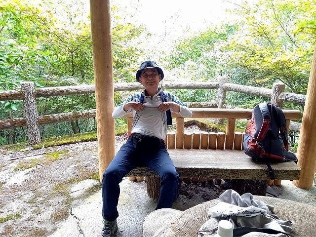 スタートから30分ほどで展望所の東屋に着いた。まだそれほど歩いてもいないのに、