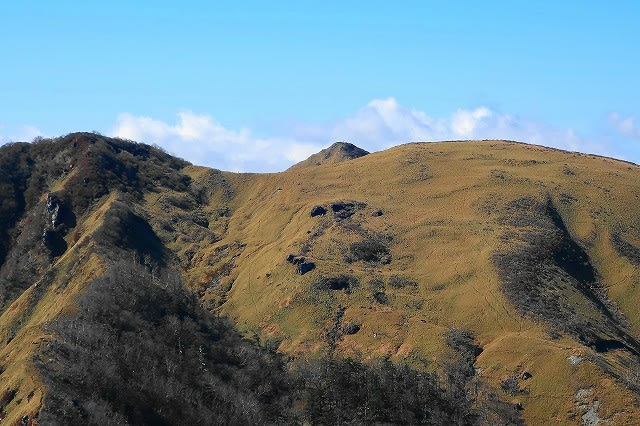 そのピークへ少し登って振り返ると、西熊山の北側は緩やかで南側は急峻な対照的な