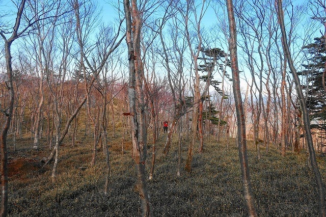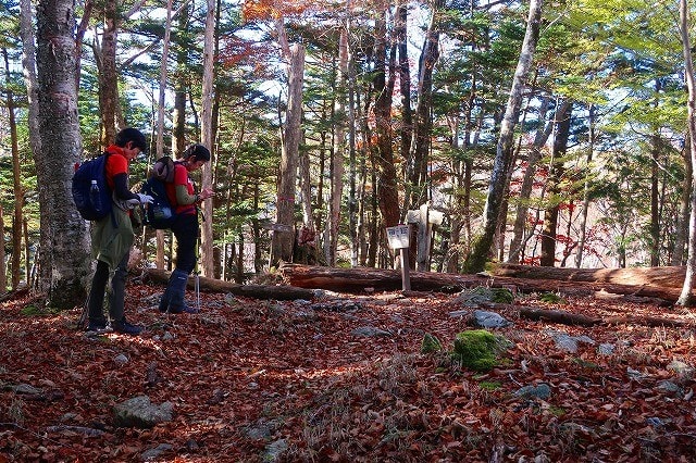 このピークからは樹林帯の中の道になるので、天狗塚からの稜線ともお別れだ。