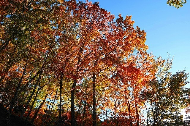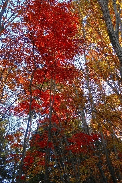 その黄色い林を抜けると今度はカエデだろうかオレンジ色の木々が多くなってきた。