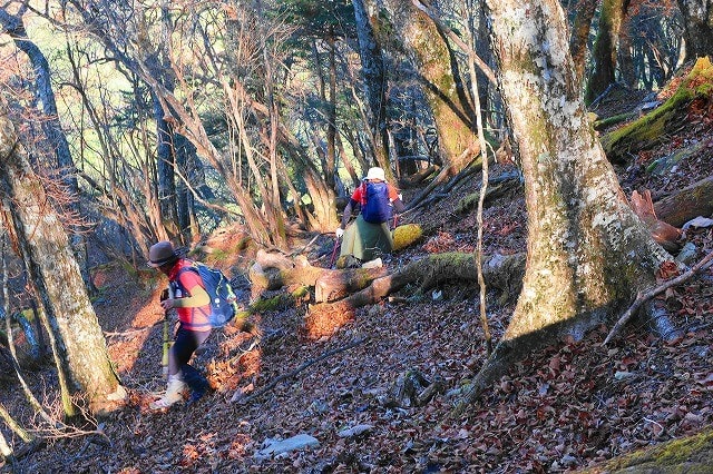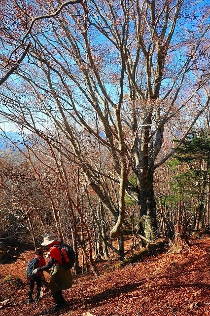 天狗峠からはお亀岩に向かって一旦下って行く。稜線上の木々の葉はもう全て散っている。