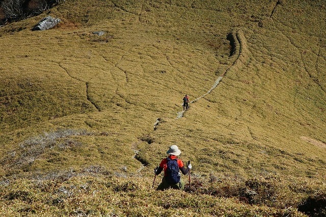 しばらく賑やかに過ごした後、北西尾根へと下山していく。稜線上の登山道から分かれて