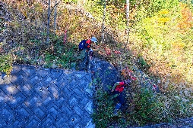 スマホを見ながらとにかくルートから外れないようにと下って行くが、斜面が急で