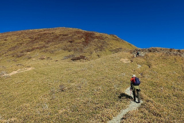 大タオからは三嶺への最後の登りとなる。小さなピークを一つづつ乗り越えては