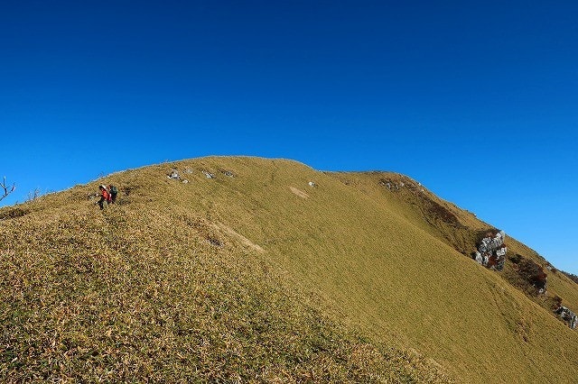 何回かそのピークを越えて見上げると三嶺から続く大きな肩。