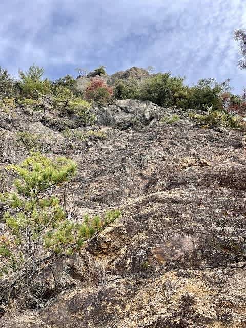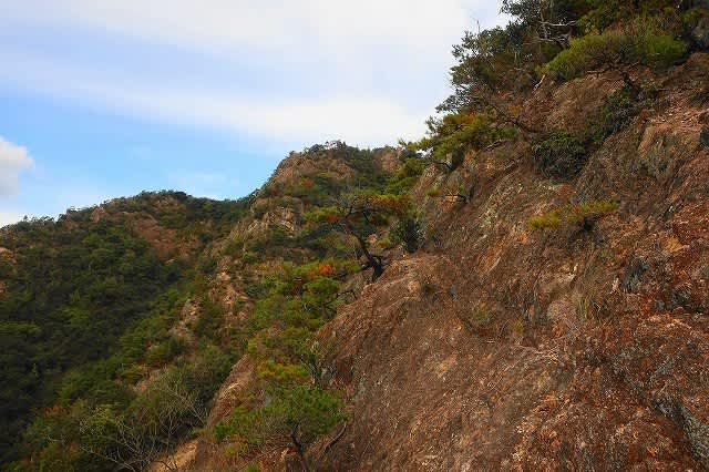 岩肌にはちょこちょこと松の木が生えているので、それを掴んで登ったり、岩に手を