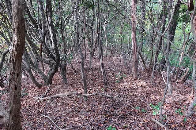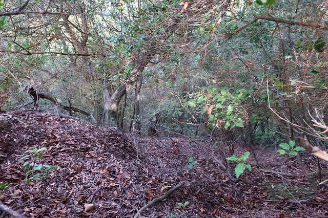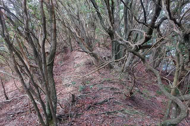 221mへは尾根、そして広尾根を辿って行く。途中ウバメカシの尾根になったかと思うと、