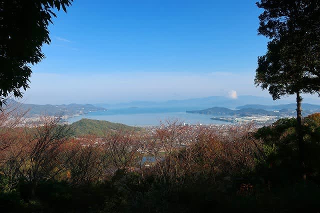 ここも社殿が増築され真新しくなり、狛犬の奥にはベンチが置かれ、目の前に志度湾の