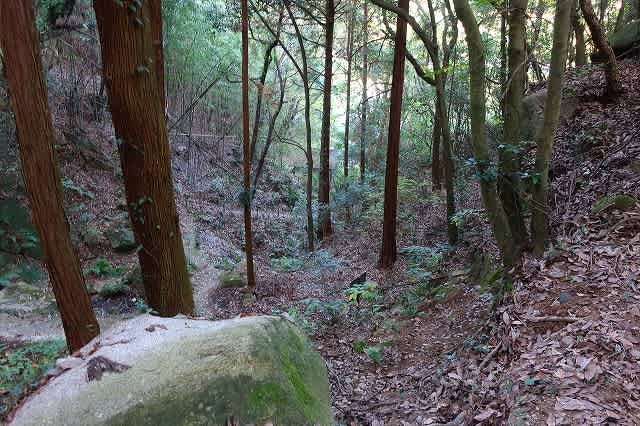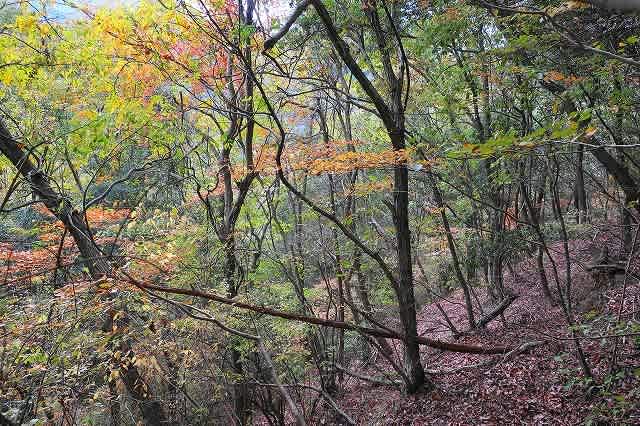 尾根筋は木々の密集度が高いので、それを避け尾根から少しトラバースしながら、