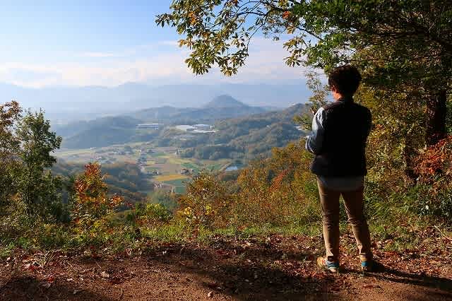 低山の里山ながら思わぬ景色とヤマガラと戯れて大変満足頂いた様子の奥さん。場所、
