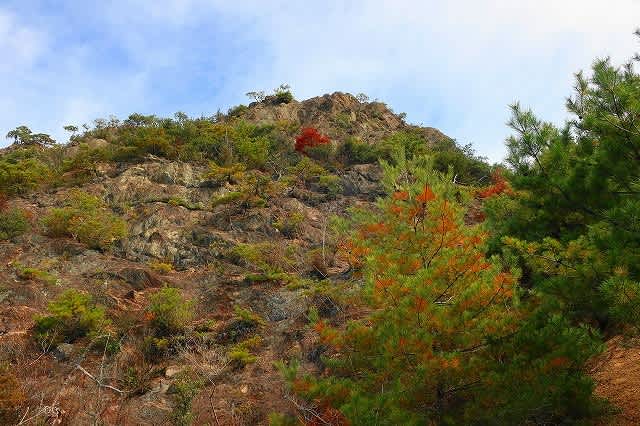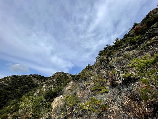 見える。頭上にはこの岩肌のピークが見え、横を見るともう一筋向こうの岩尾根が見えた。