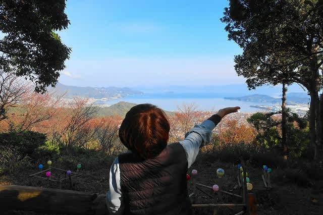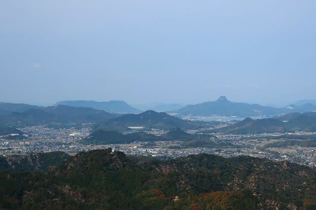 讃岐七富士の内のひとつ、白山が正面に見える。ここでも奥さんがその景色に