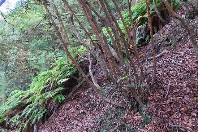 羊歯を掻き分け登って行くと、直ぐに花崗岩が風化した尾根に出た。