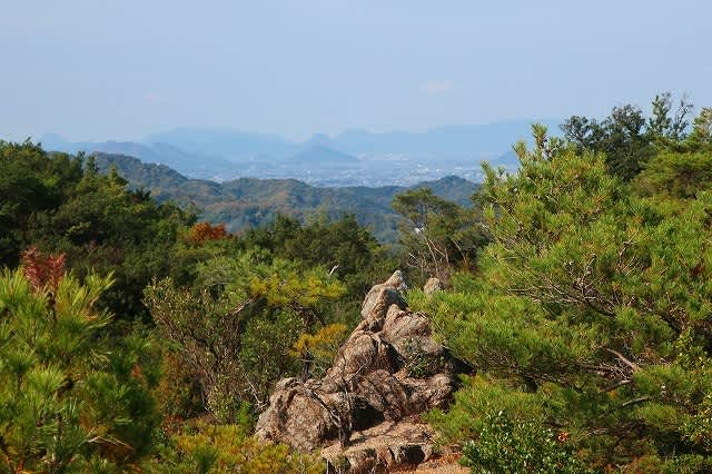 どうやら下から見えていた岩肌の尾根に出たようだ。振り返ると檀特山へ続く稜線が