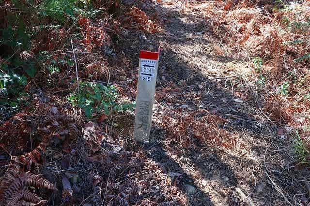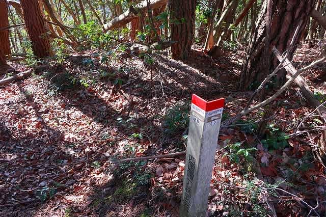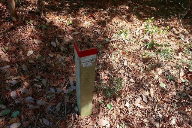 すると突然、保線路の標示杭が現れた。ここから南に派生した尾根を進むと26番