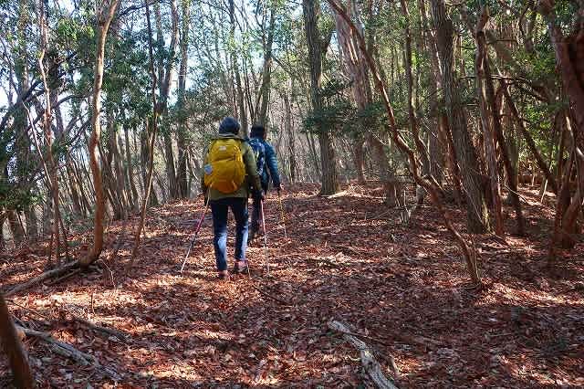 九十九折れの道が終わり広尾根の道になると、東に続く尾根への取付きの辺りになる。