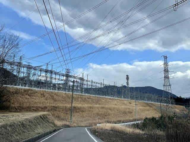 変電所をゆっくり見てみよう。線で繋ぐ里山歩きも送電線もどちらも線で繋がっている。