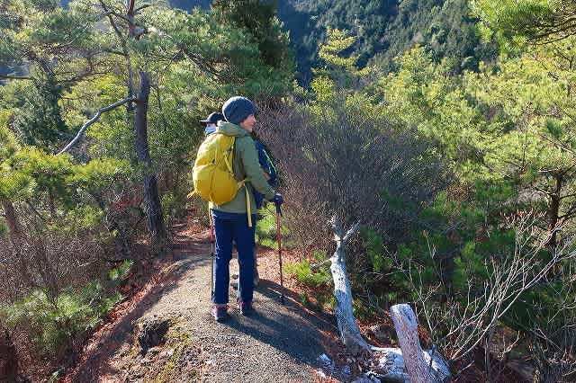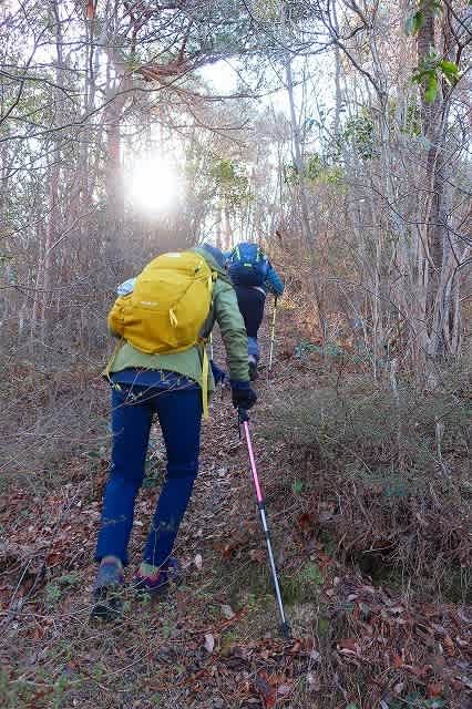 花崗岩の風化した痩せ尾根を渡ると急登が始まった。まだ凍ったままの地表は足を