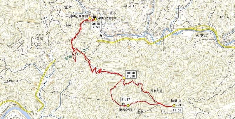 山犬嶽や高丸山に出かける時も通っていた道で、坂本と書かれた標識は目にしていたが、