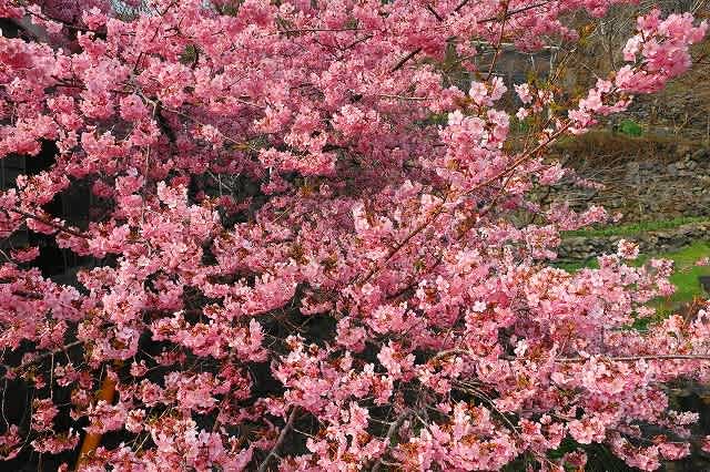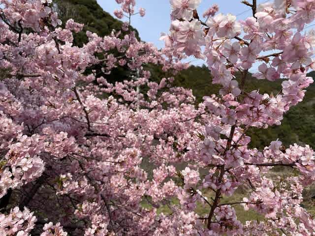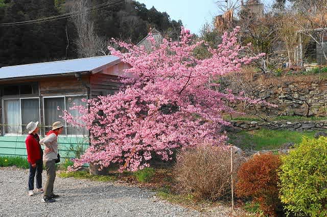 駐車場では満開の河津桜を見て、お雛様と花とお買い物の三拍子そろった一日が