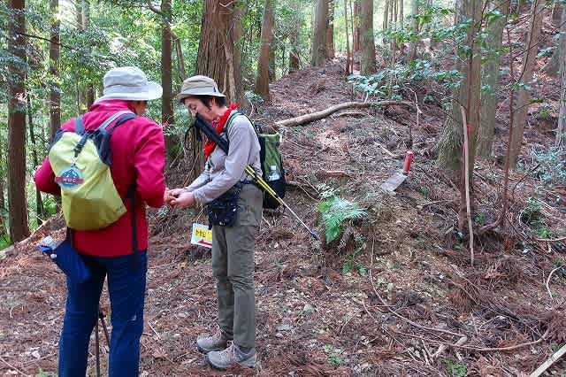 その作業を横目に見ながら杉林の中を歩いて行くと、トレッキングコースの案内板と