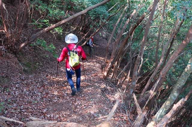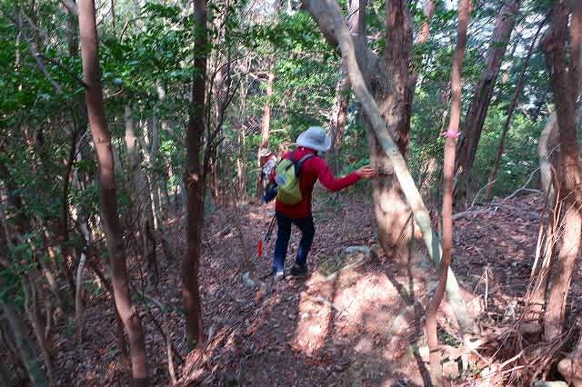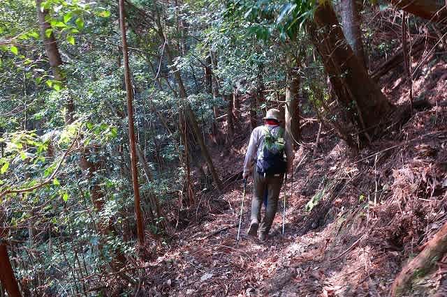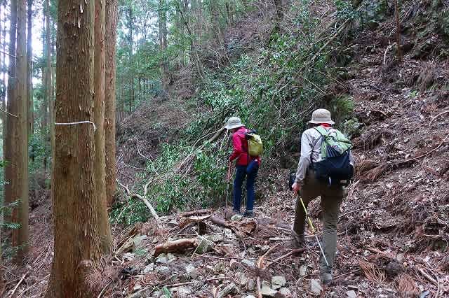なってきたが、杉林の中になると道が不明瞭になってくる。それでも薄い踏み跡を