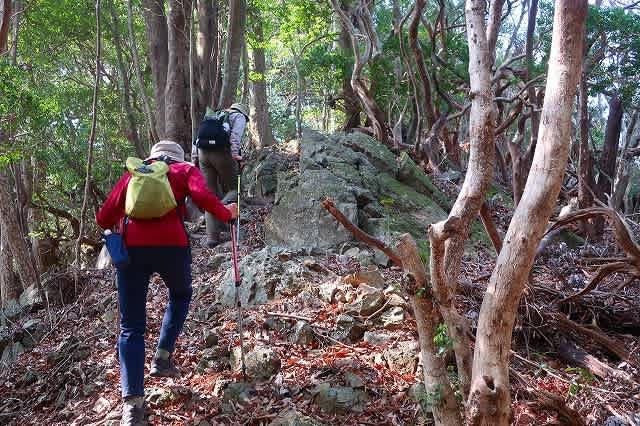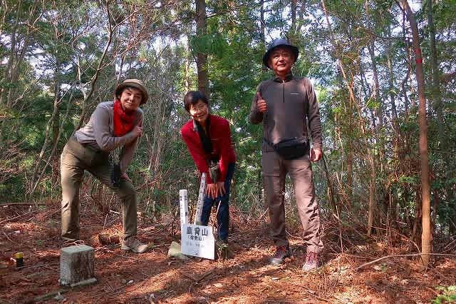 露岩の尾根を抜け、杉林の中を歩きスタートから40分弱で樋口山に着いた。