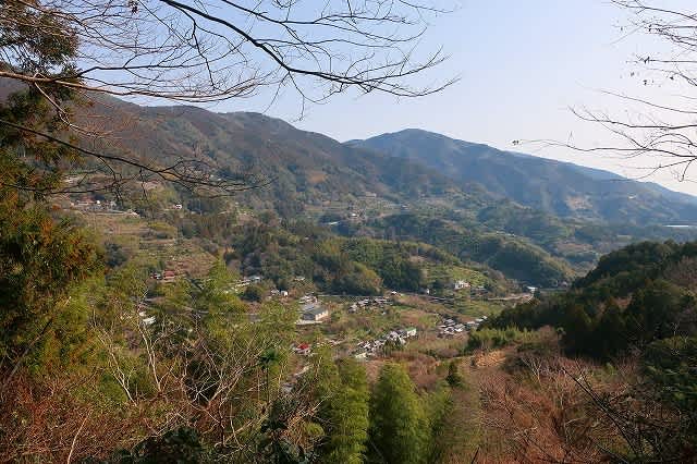 途中では坂本の集落が山裾からかなり上の方まで続いているのが見えた。山の斜面は