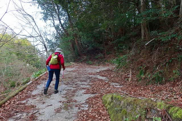 枯れ落ちた枝葉で歩きづらかった道は、山側から落ちて来た石で更にガタガタの道になる。
